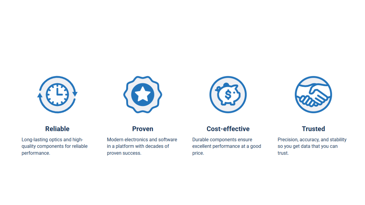 The LI-830 and LI-850 are dependable and robust, providing low cost of operation. User-serviceable components minimise downtime. If maintenance is needed, you can do it yourself, typically, and the instruments do not require factory recalibration after service.